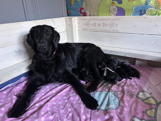 Niezmiernie miło nam jest poinformować, że 24 lutego 2025 przyszły na świat szczenięta, pierwszy miot Harret! 12 maluchów w kolorze czarnym ma się świetnie. Do nowych domów będą mogły pojechać …